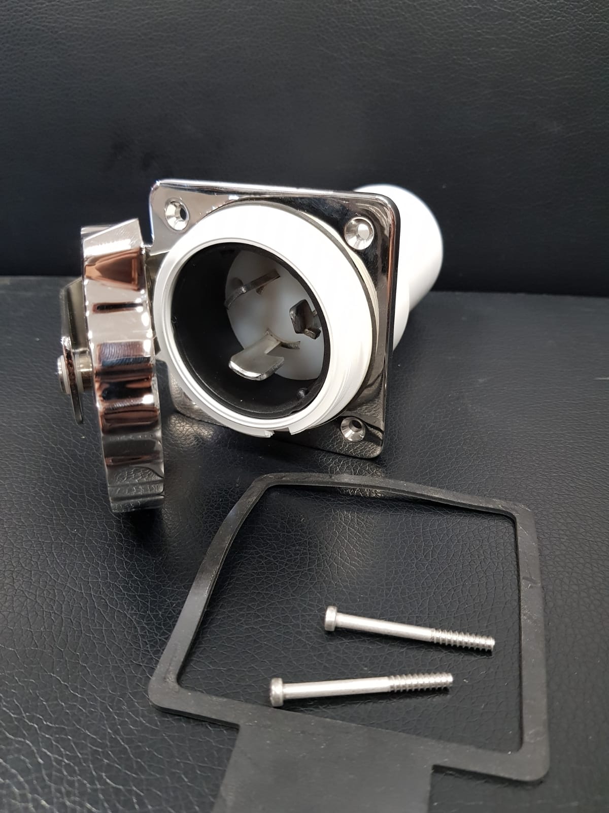 Розетка с резьбовой крышкой и резиновым уплотнителем. Три контакта.