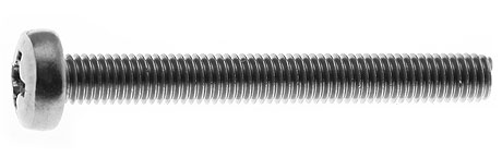 Винт из нержавеющей стали с полукруглой плоской головкой. Шлиц по крестовую отвертку (DIN 7985). Стандартная метрическая резьба М4-М8. Цифра после знака «Х» в маркировке — длина в мм, например М4х16 = винт с резьбой М4 длиной 16 мм.