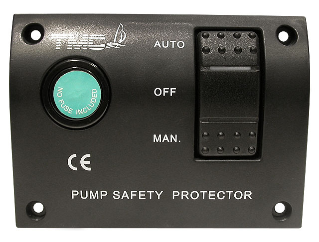 Панель управления, включающая двухпозиционный клавишный выключатель, позволяющий включить помпу вручную или перевести ее в режим автоматической работы (для неавтоматических помп потребуется приобретение поплавкового выключателя). Снабжена гнездом под плавкий предохранитель и реле подключения нагрузки, рассчитанное на ток 40А. Внимание! Если выбранная вами трюмная помпа потребляет ток силой 10 А или выше, подключение поплавкового выключателя к ней следует проводить только через данную панель управления. Для остальных помп панель является опцией, обеспечивающей дополнительную надежность.