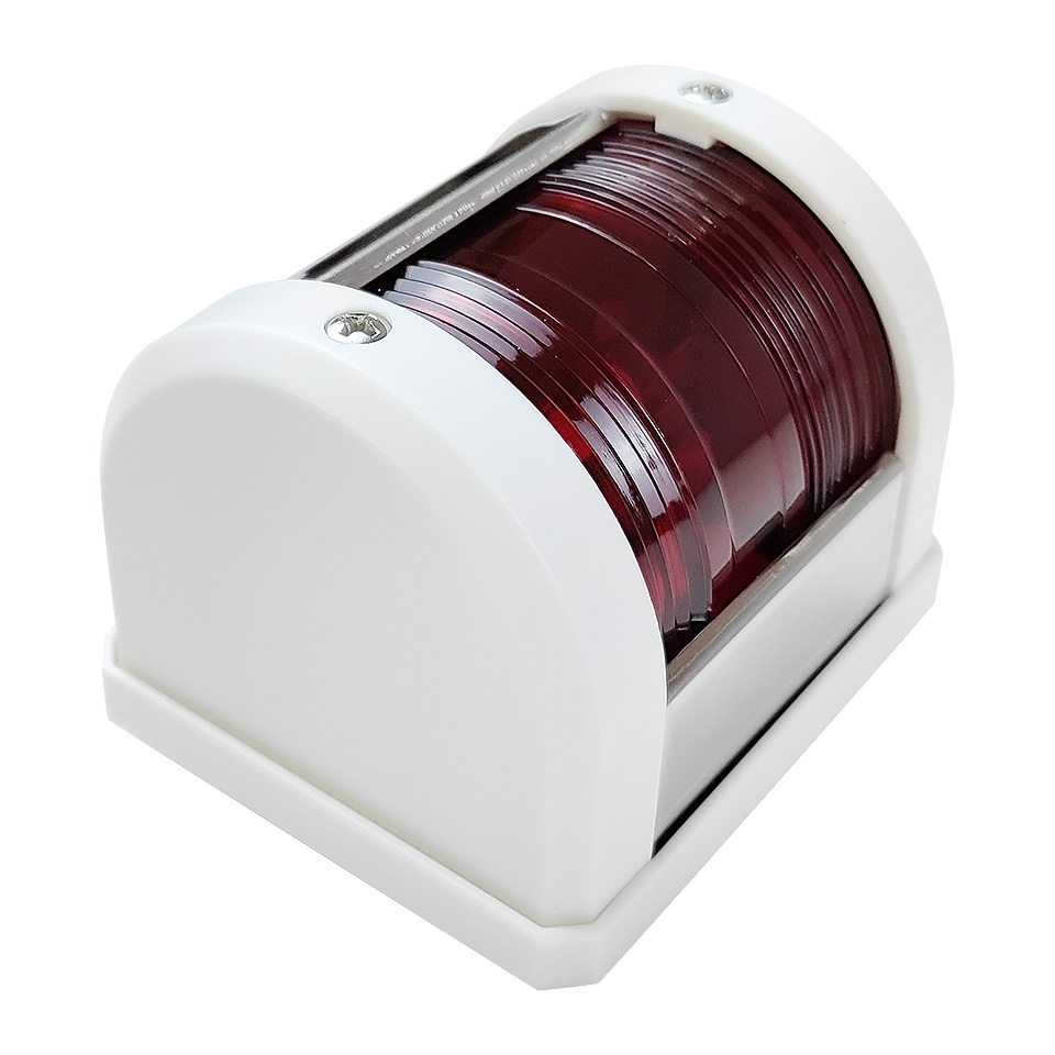 Класический навигационный красный огонь устанавливаются на левом борту судна. Обеспечивает освещение секторов с углом в основании 112,5 градусов. В корпусе из пластика белого цвета. Светодиодный.