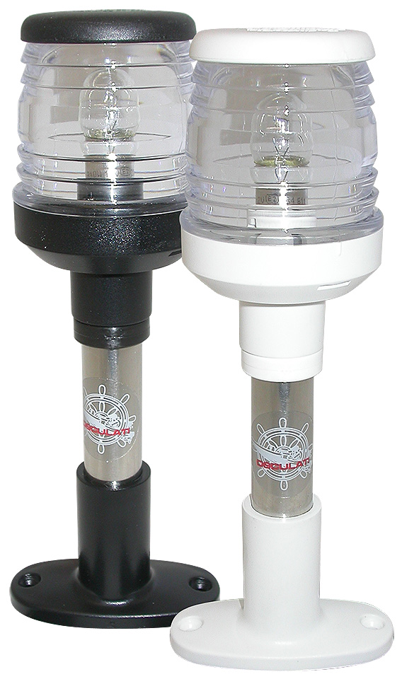 Белый навигационный огонь с дугой освещения 360 градусов на стойке высотой 200 мм. Используется в качестве стояночного (якорного) огня. Правила допускают использование его в качестве универсального ходового огня на гребной лодке и парусной яхте длиной менее 7 метров (в этом случае, требуется еще и фонарь для освещения парусов, который включают при приближении другого судна). Линза Френеля способствует распределению светового потока в горизонтальной плоскости, что увеличивает дальность видимости огня при неизменной мощности лампы.