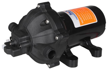 Самовсасывающая диафрагменная электрическая помпа для подачи воды с автоматическим выключателем. Применяется для поддержания давления в бортовой водопроводной системе. Не повреждается при «сухой» работе. Рабочий элемент — 5 диафрагм. Благодаря создаваемому высокому давлению, может быть использована как помпа для мытья палубы. Штуцеры с водопроводной резьбой ½ дюйма.