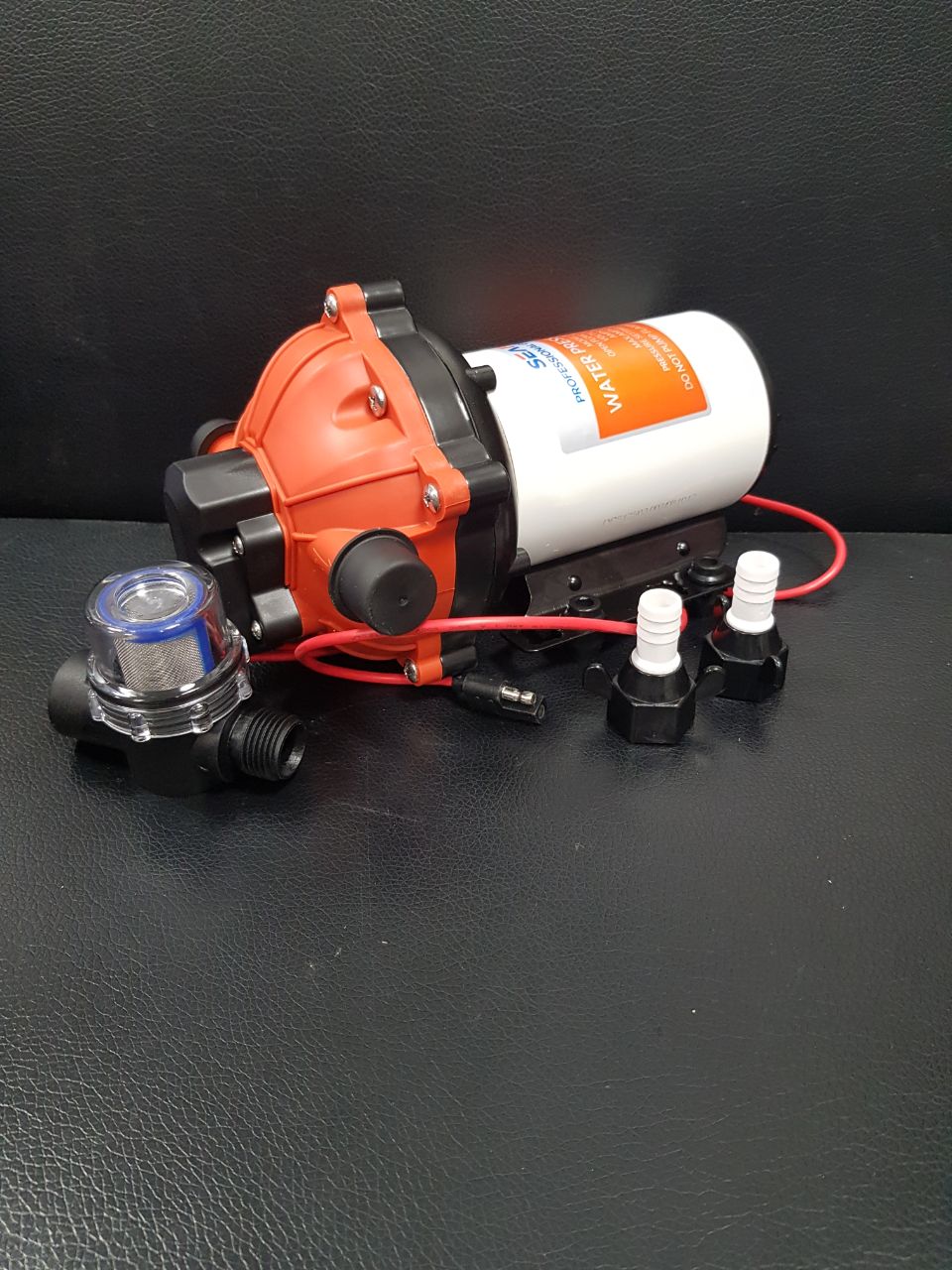 Самовсасывающая мембранная электрическая помпа для подачи воды с автоматическим выключателем. Мембраны изготовлены из сантропрена – термопластичной резины.