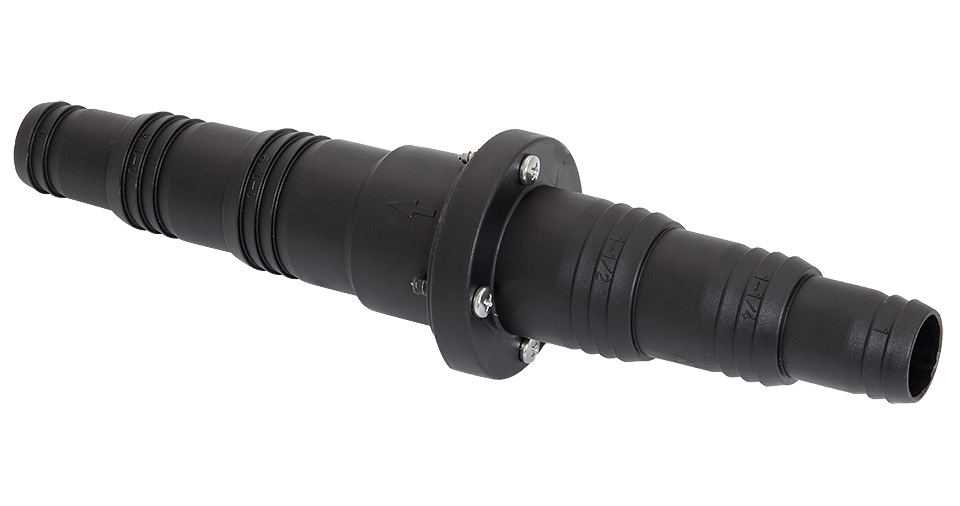 Патрубок из полипропилена с резиновым клапаном. Препятствует обратному току жидкости. Имеет штуцеры под шланги различного диаметра: 13-20-26 или 25-32-38 мм.