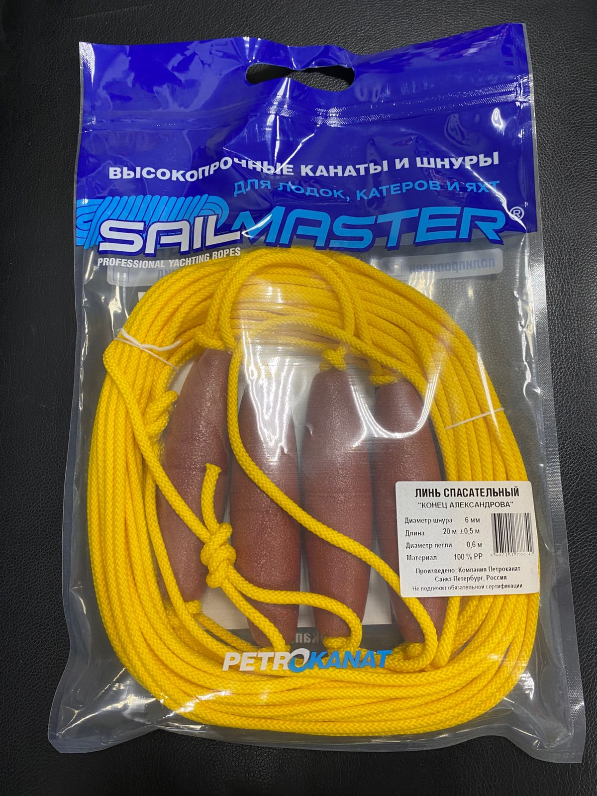 Спасательный линь (конец Александрова), шнур двойного плетения с поплавками. Характеристики. Положительная плавучесть. Минимальное удлинение. Мягкий и приятный на ощупь, комфортен при работе руками. Оснащен ПВХ-поплавками. Имеет ярко-желтую окраску для лучшей видимости в воде. Сфера применения: разработан специально для оснащения спасательных средств, маломерных судов и постов спасательных станций. Материал: светостабилизированный мультифиламентный полипропилен (ПП), L 100 (поплавок ПВХ).