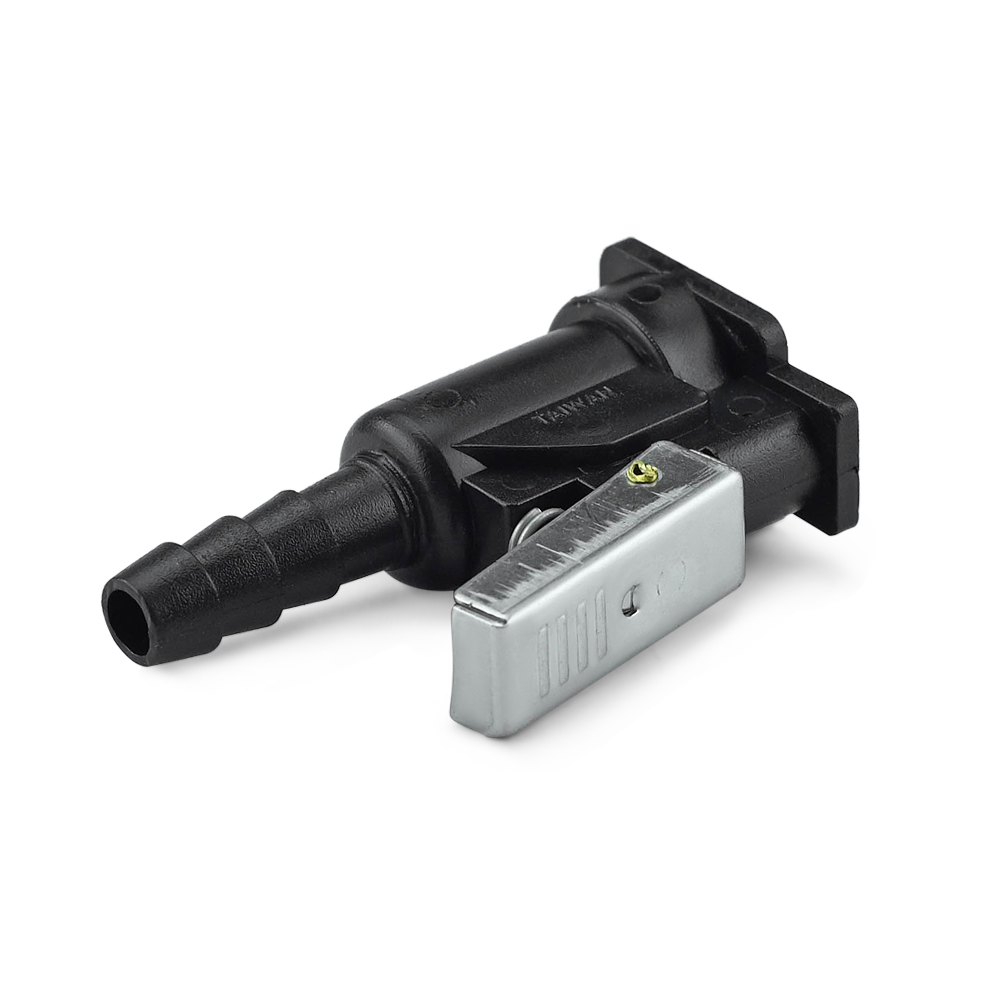 Коннектор топливный для мотора и переносных бакам Yamaha, Mercury, Tohatsu (4-stroke), Honda выпуска 2002 г., кроме мотора Honda 5 л.с.. Снабжен металлическим запорным клапаном.