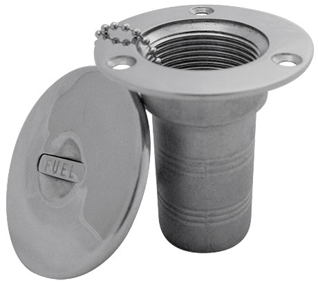 Палубные заливные горловины. Надписи «Fuel» (топливо), «Diesel» (дизельное топливо), «Waste» (сточные воды) на заливной пробке. Изготовлена из нержавеющей стали (AISI 316). Верхняя часть горловины (фланец и пробка) отполированы.