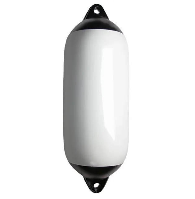 Надувной кранец из ПВХ белого цвета с двумя черными рымами.