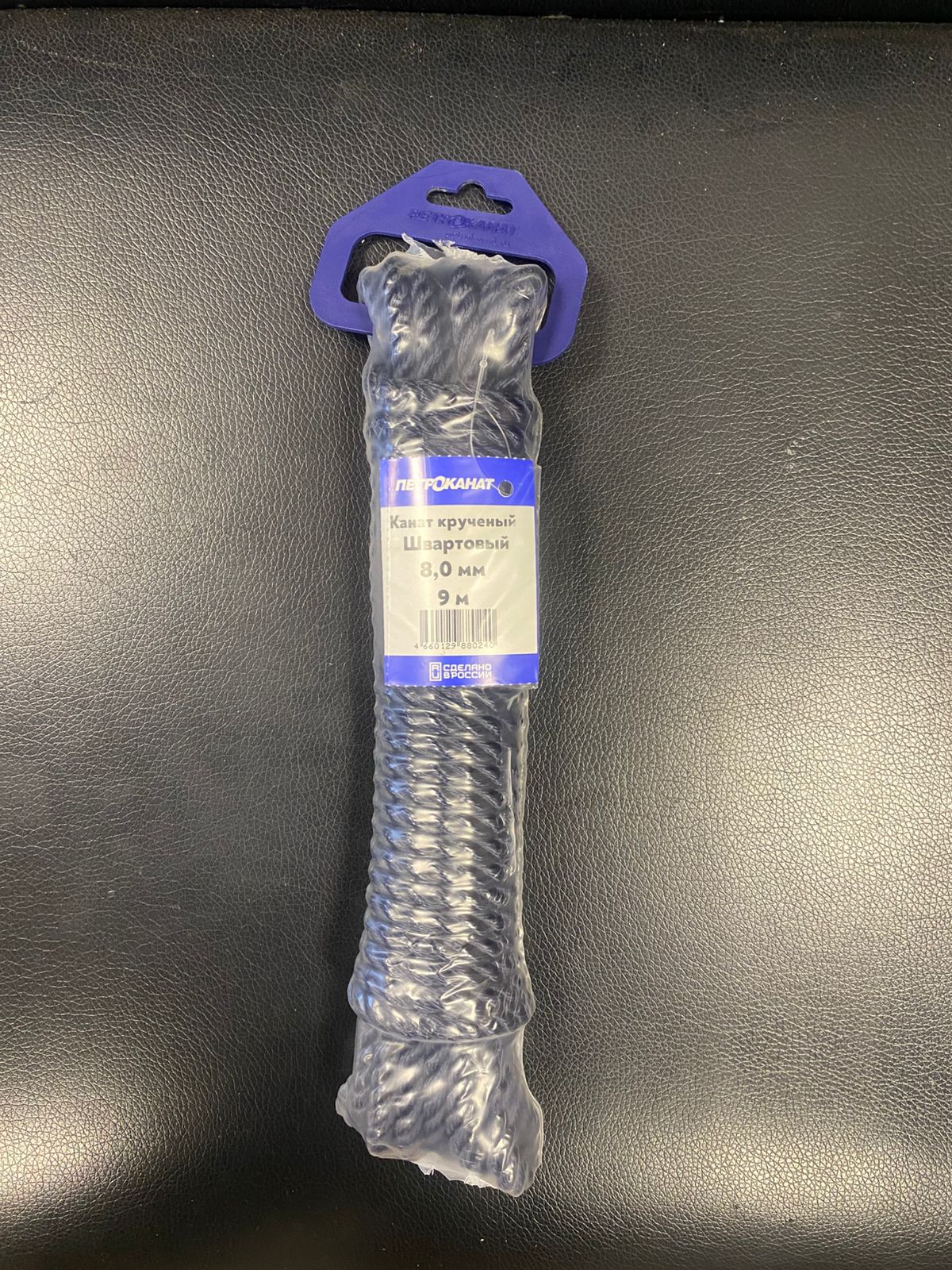 Канат крученый Швартовый 8,0 мм, темно-синий Navy Blue, 1300 кг, 9м, евромоток 00-00002146