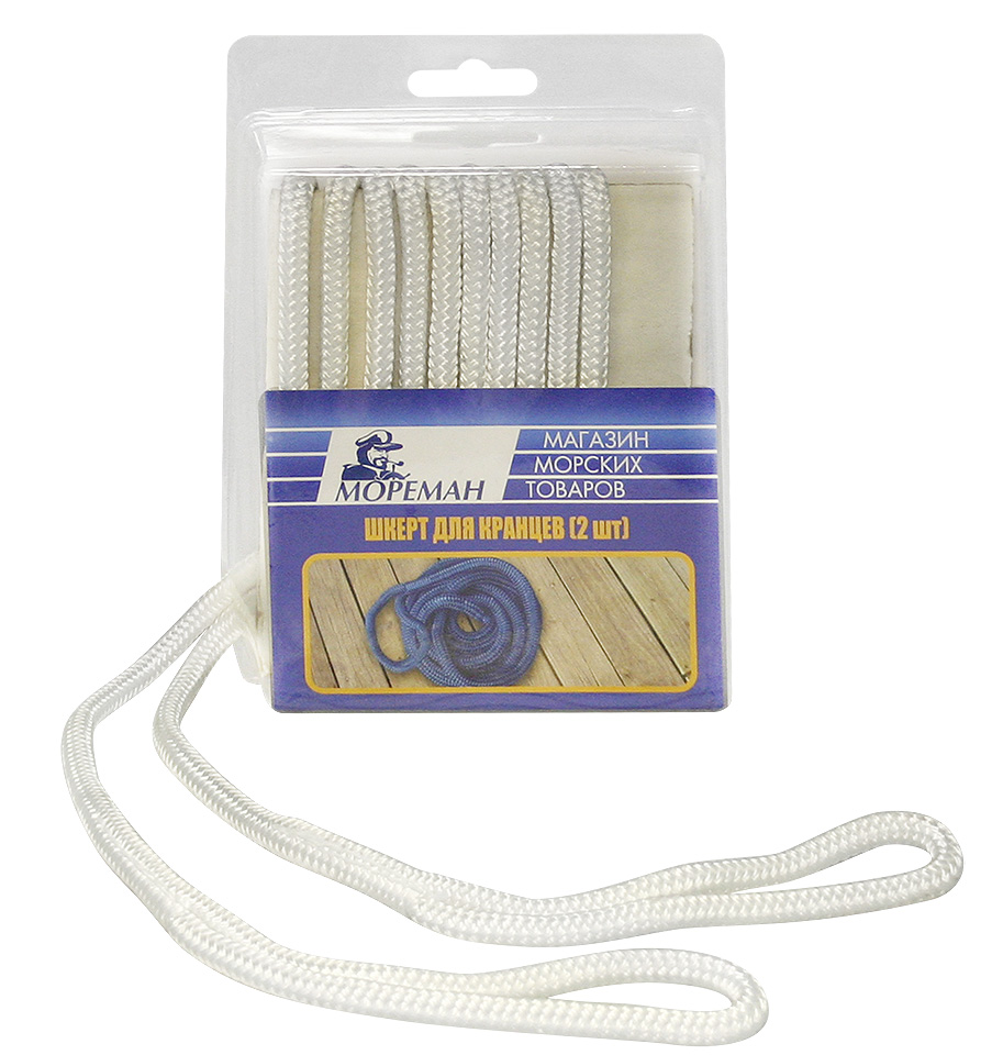 Новинка! Готовый плетеный шкерт "Мореман" для кранцев. Поставляется парами (цена за пару). Каждый шкерт имеет на одном из концов заделанный фабричным способом компактный огон. Изготовлен из качественного нейлона.