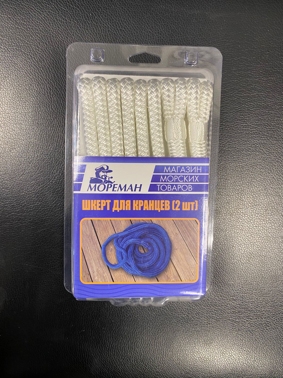 Новинка! Готовый плетеный шкерт "Мореман" для кранцев. Поставляется парами (цена за пару). Каждый шкерт имеет на одном из концов заделанный фабричным способом компактный огон. Изготовлен из качественного нейлона.