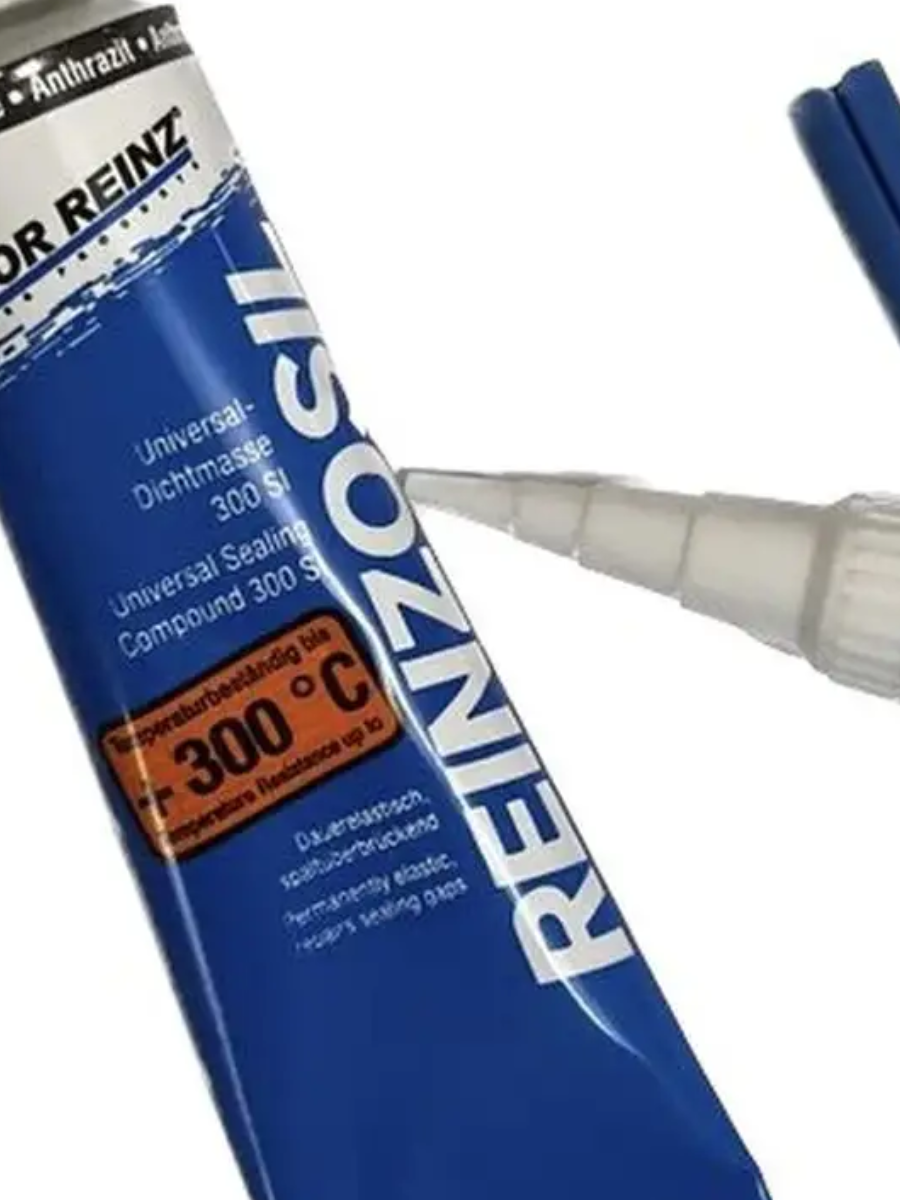 VICTOR REINZ REINZOSIL +300 –Высокоэффективный универсальный силиконовый герметик, имеет антрацитовый цвет. Обладает хорошей эластичностью, быстро затвердевает, не содержит растворителей. Может применяться для уплотнения зазоров в плоских соединениях (без демонтажа деталей).Теплостойкость от – 50 o C до +300 o C (кратковременная максимальная температура). Обладает хорошей стойкостью к химическим средам, как дизельное топливо и топлива для ДВС, масла, жиры, смазочные средства, вода, морская вода, солнечный свет и озон.Область применения: Для уплотнения всех уплотнительных поверхностей в моторе, коробке передач, мостах, для уплотнения гильз цилиндров и картеров.