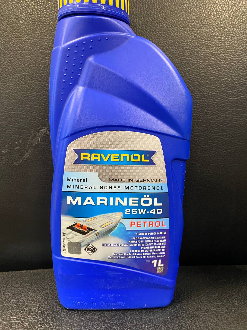 RAVENOL MARINEOIL PETROL SAE 25W-40 минеральное моторное масло с добавлением синтетических компонентов для судовых двигателей. Подходит для стационарных и подвесных бензиновых судовых двигателей.