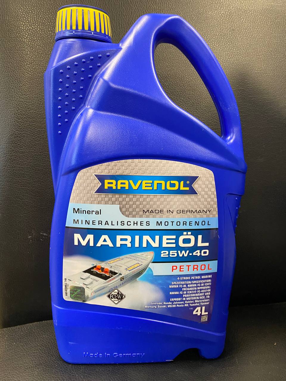 RAVENOL MARINEOIL PETROL SAE 25W-40 минеральное моторное масло с добавлением синтетических компонентов для судовых двигателей. Подходит для стационарных и подвесных бензиновых судовых двигателей.