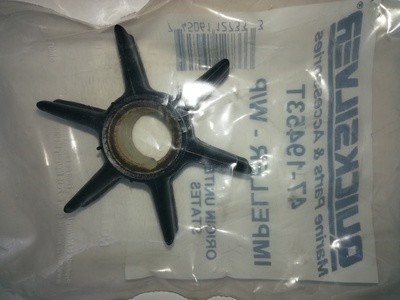 Крыльчатка помпы охлаждения подвесных моторов Mercury: четырехтактные четырехцилиндровые 40 лс, с редуктором 1.83:1 (серийных номеров с 0Т228405 и далее), четырехтактные четырехцилиндровые 40EFI, 50EFI, с редуктором 1.83:1 (серийных номеров с 0Т409000 и далее), 45JET (трехцилиндровые, серийных номеров с 0D000750 и далее), 50 лс (трехцилиндровые, серийных номеров с 0D000750 по 0G589999), 55, 60 лс (трехцилиндровые, серийных номеров с 0D000750 и далее), 60 четырехтактные со стд. редуктором (серийных номеров с 0Т178500 и далее).