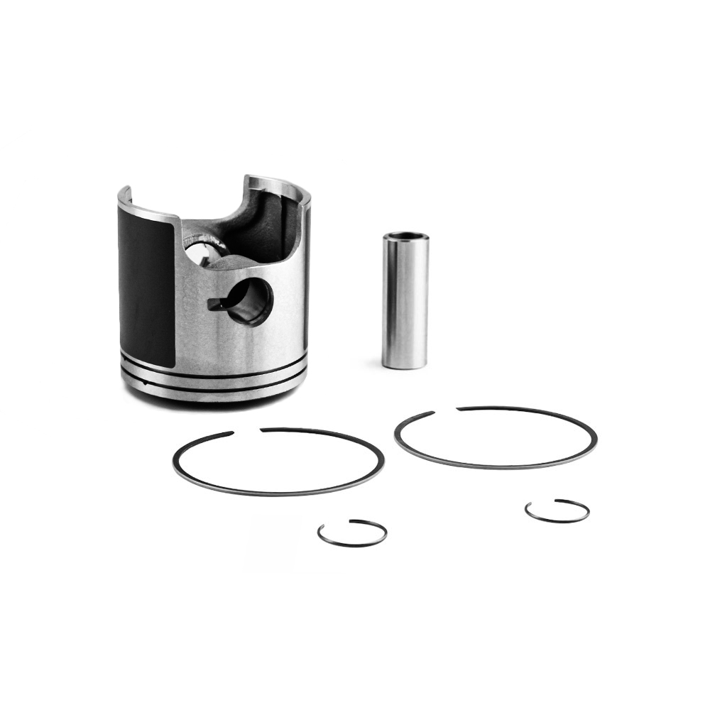В комплекте: поршень, компрессионные кольца, поршневой палец, стопорные кольца пальца.